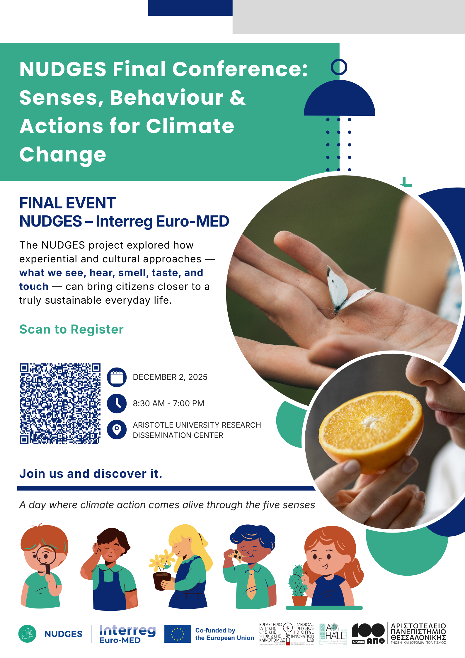 The NUDGES project is approaching its final chapter — and we invite you to join us in Thessaloniki for a two-day, fully in-person conference dedicated to exploring how our senses, behaviours, and cultural practices shape climate action.